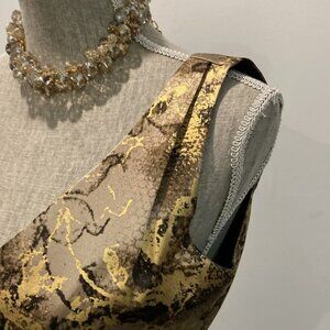 Featuring stylish and luxury metallic abstract Gold and and brown graphic. Perfect for cocktail nights or the office style, it features a sleeveless style, pleated shoulders and fitted waist so you can flaunt a polished, stylish, look every time.