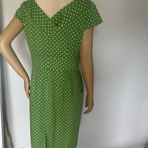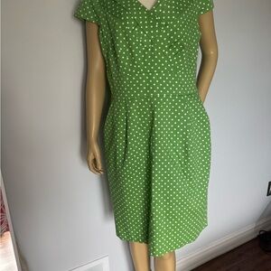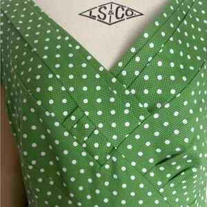 Tahari Green Polka Dot cotton Dress. Ptp 20” lenght 39”