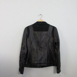 Tahari Leather Wrap Jacket Women M Black Moto Asymmetrical Biker Grunge 844