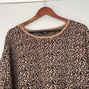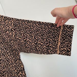 Three-quarter length sleeve, crewneck, small slits at bottom on sides.