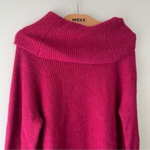 Tahari Merino Wool Knit Sweater Cowl Neck Pullover Dark Pink Size XL