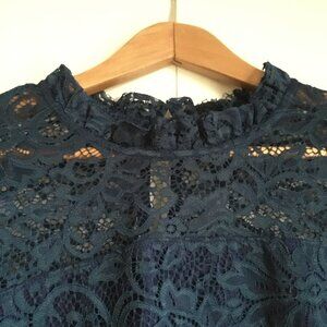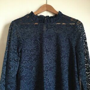 Tahari Navy Blue Lacy Bell Sleeve Lolita Babydoll Dress