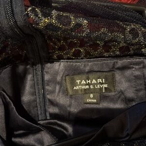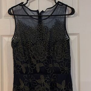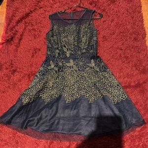 Tahari Navy Sheer Embroidered Fit and Flare mini party dress