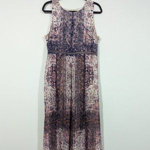Beautiful Full-Length Chiffon Pink Blue Geo Sunburst Formal Party Dress from Tahari.