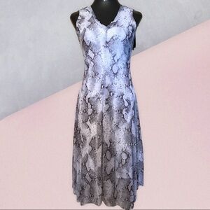 Tahari, python print, snakeskin, Y2K, grunge, alternative, goth, punk, E-girl, night out, clubwear, concert outfit, animal print, midi dress, sleeveless, flare dress, new with tag, party dress