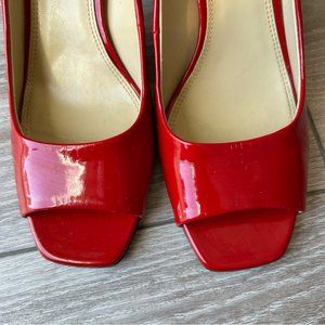 Tahari RIDDLE Red Patent Leather Heels Open Square Toe Pumps