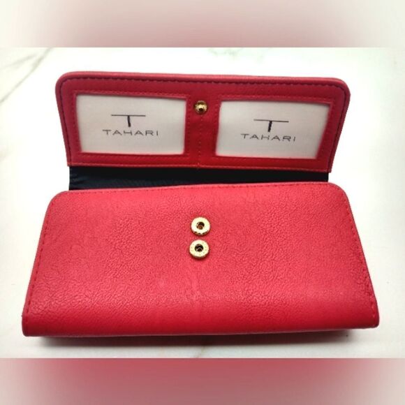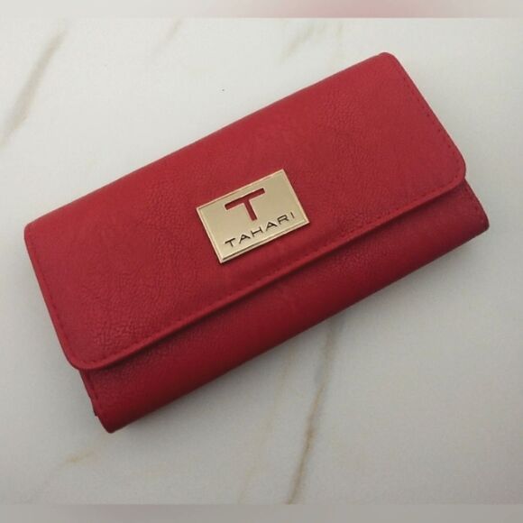 Elegant and stylish, this Tahari red wallet is perfect for any occasion. Crafted with attention to detail, it offers both functionality and fashion.