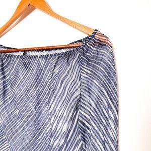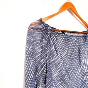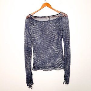 Tahari Sheer 100% Silk Y2K Long Sleeve Blue Blouse Top