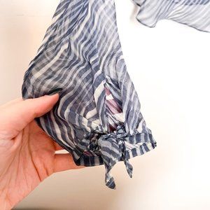 this is such a cute top. Made with 100% silk. Super delicate and sheer. Has a cool 70s vibe wavy striped pattern.