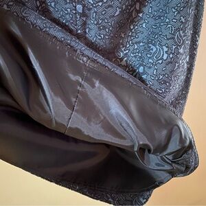 Deep blue and black lace pattern. Side open slits. Back zipper. Lined.