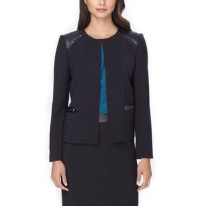 Tahari Studded Faux Leather-Trim Ponte Knit Jacke