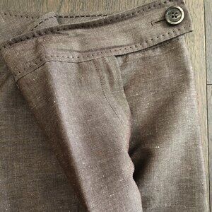 Tahari Vintage Linen Poly Viscose Blend Lined Pants Pin Stitching Brown Sz 8
