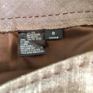 Tahari Vintage Linen Poly Viscose Blend Lined Pants w Pin Stitching in Tan/Light Brown