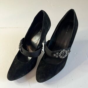 Tahari Women’s Black Suede Mary Jane Heels | Style: Eva | Embellished Strap | Size 8.5M