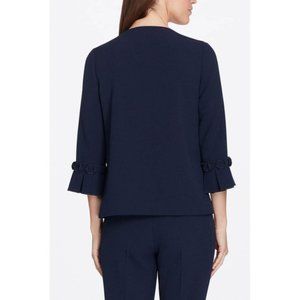 Tahari Women's Jeweled Pleat Sleeve Jacket Navy 16
