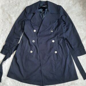 Tahari Women's Navy Blue Belted Midi Trench Coat Size M