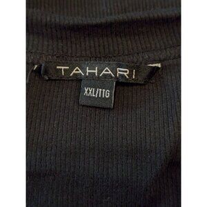 This Tahari tank top is a size XXL (18) in black, made of ribbed cotton with stretch. It features a sleeveless design, round neckline, and pullover closure. This basic top is perfect for layering, with a minimalist and classic style suitable for casual occasions. It is a staple essential piece that offers an athletic fit for plus-sized women.