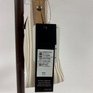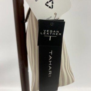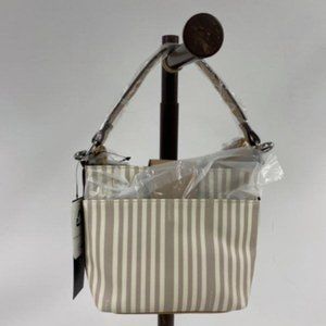 Tahari Womens Sand/Gray Striped Vegan Leather Double Handle Satchel Tote Handbag.