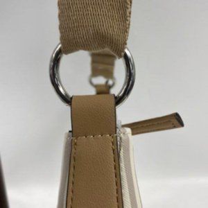 Tahari Womens Sand/Gray Striped Vegan Leather Double Handle Satchel Tote Handbag