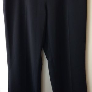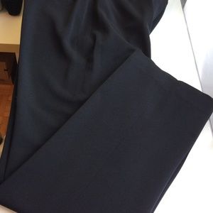 These crisp black pants will make you feel like a boss every time. Tahari makes great quality pants and this item has been worn a few times and still looks in great condition. Wide leg, can be paired with a tighter crop top or blazer for work. The material makes it feel cool to the skin and rarely wrinkles. Dry clean only.