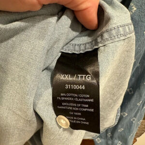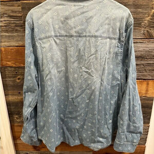 Tahari chambray jean button long sleeve USXXL star print faded pockets comfy