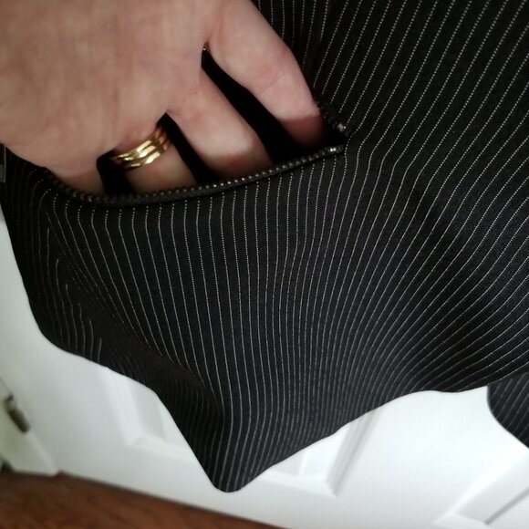 Black pinstripe and beautiful features such as two real front pockets (which are hard to find!)