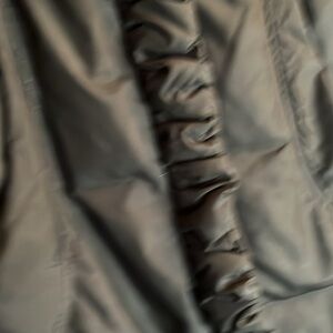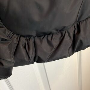 Ruffle details and statement collar that can be rolled over the head, almost like a hood.