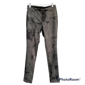 Tahari, grey ultra suede jeggings. Elastic waist band, very good pre-owned condition. It’s ultra suede so the color in photos looks like there is more contrast than there really is. It’s just the direction of the fabric when you see the patchiness.