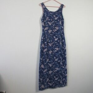 Keywords: Tailor B. Moss, maxi dress, floral dress, sleeveless dress, vintage dress, rayon dress, blue dress, purple dress, 90s dress, retro dress, party dress, casual dress, midi dress, summer dress, gown, burnout