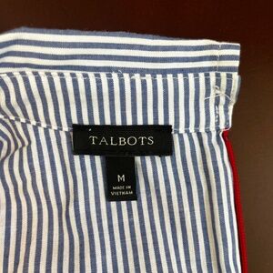 Beautiful trailered red dress with cheater striped white/blue at the cuffs. Hidden Zipper up the back. It has pockets!