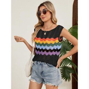 Takeyal Women Black Sleeveless Crochet Tank Casual Summer Striped Sweaters