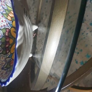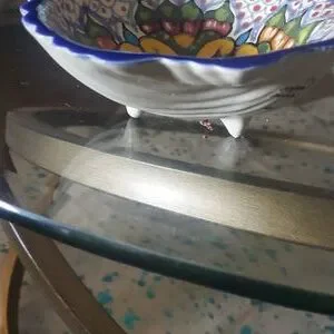 Brighten your dining experience with this hand-painted floral ceramic bowl. Featuring vibrant blue and yellow hues, it's perfect for serving snacks or as a decorative piece.