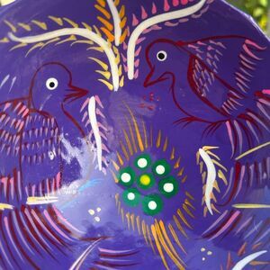 Charming decorative plate featuring vibrant bird design. Perfect for adding a touch of color to any space. 6" in diameter 2.5" tall. No Chips Or Cracks.