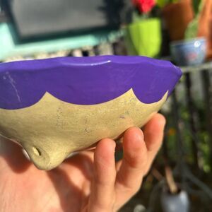 Talavera Mexican Pottery Salsa Bowl Footed Hand Painted Trinket Red Purple Birds