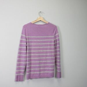 Talbots 100% Cashmere Sweater Women M Purple Striped Long Sleeve Knit Casual 218