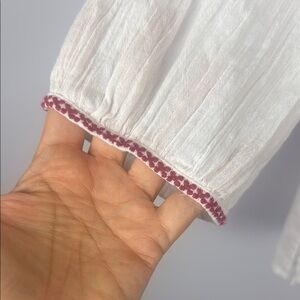 Talbots 100% Cotton White Embellished Top with Red Pink Embroidery Size Medium