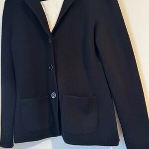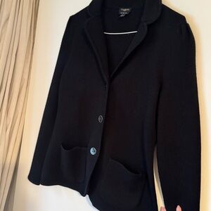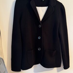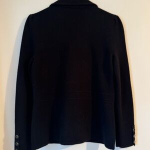 Talbots 100% merino wool black cardigan jacket sweater new size s petite women's shirt coat coverup! Elegant highest quality natural wool, size small also fits extra small xs women's button up jumper, new perfect condition luxury brand. Cute round buttons details on long sleeve sleeves cuff and down the front, two front pockets, fine dark woolen knit and lapel collar, flattering slimming design & length, keeps you warm cozy great for winter fall spring, covering up in cool weather, uk England British brand.