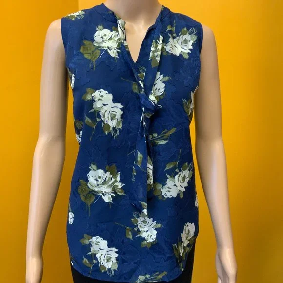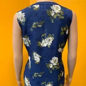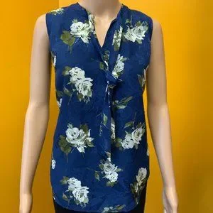 Blue Sleeveless Floral Shirt with Tie Closure at Neck Size Small