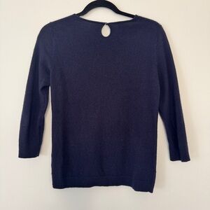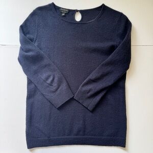 Talbots Audrey Pure Cashmere Sweater Navy Blue Soft Crew Neck 3/4 Sleeves Sz XS