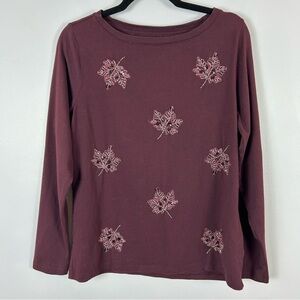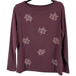 Talbots Autumn Embellished Red and Silver Crewneck Tee Size Medium