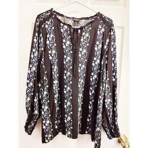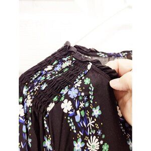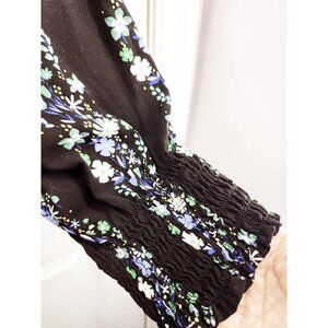 Talbots Black Floral Peasant Blouse Top Womens Size 2X Smocked Cuffs Shoulders