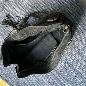 Talbots Black Leather Hobo Shoulder Bag w/ Tassels.
