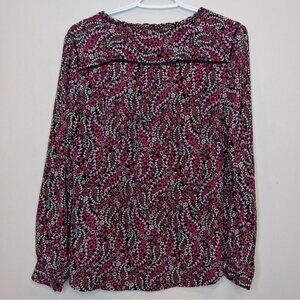 Talbots Black Pink Red Floral Print Long Sleeve Lace Detail Blouse Shirt Women S