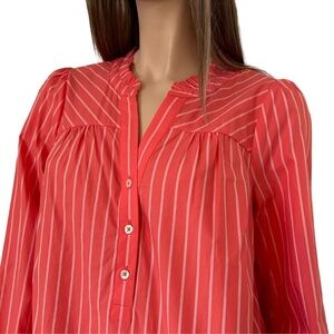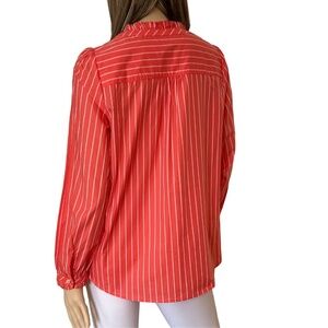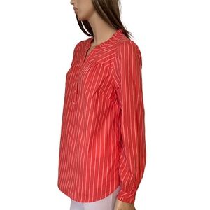 Talbots Blouse Top Long Sleeve Ruffled Neckline V-Neck 100% Cotton Button Front