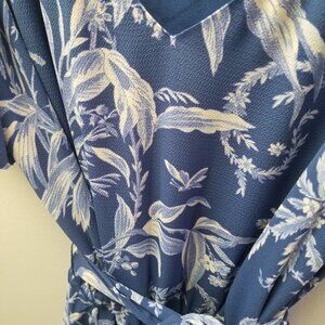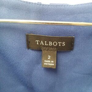 Talbots Blue Floral Etched Toile Smocked Fit and Flare Dress. Size 2. Vneck. Belted. Smocked sleeves. Lined. Chiffon fabric.