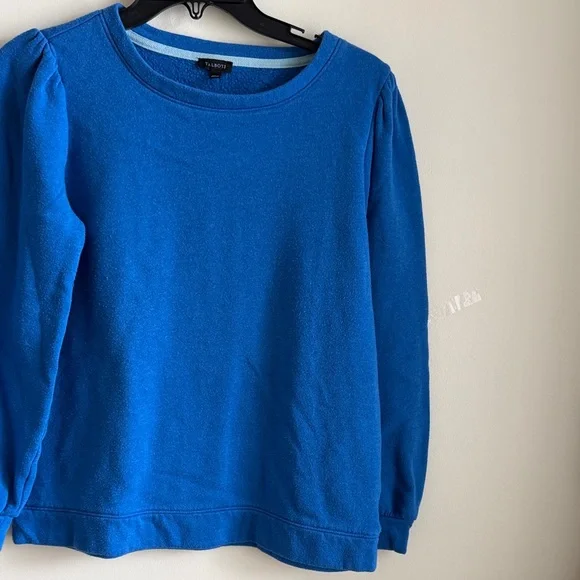 Cozy blue sweatshirt. Long sleeves with cuff. Soft fabric. Perfect for casual wear.
