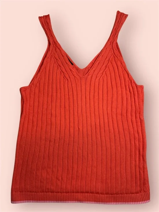 Talbots Bright Orange Ribbed V-Neck Tank
