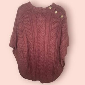 Talbots Cable Knit Button Collar Round Hem Poncho, Size S