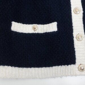 Talbots Cardigan Button Front Sweater Navy White Contrast Trim Cotton Wool Blend