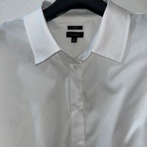 Talbots Career Cotton White Solid Shirt Sz 14 Long Sleeve Non-Iron